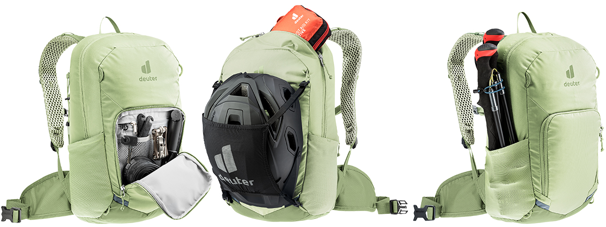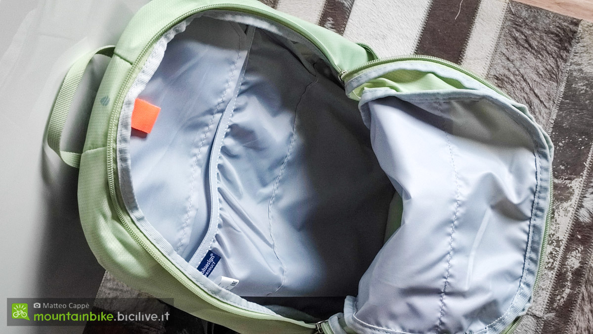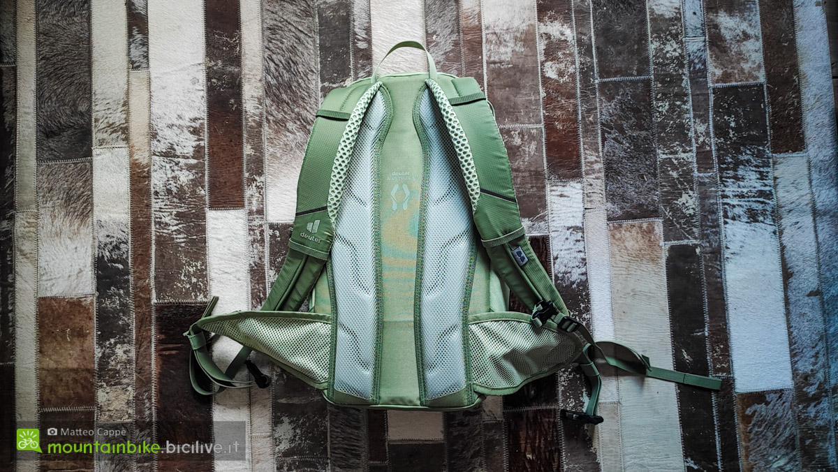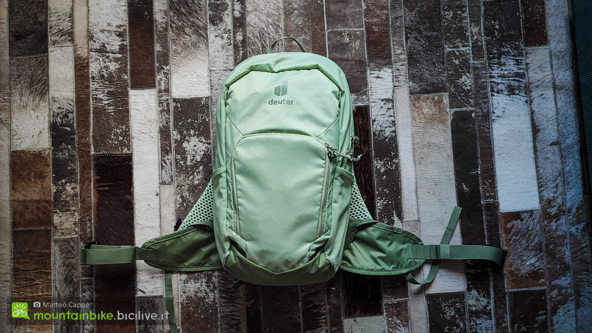 Deuter Bike I 16: uno zaino versatile per ciclisti e appassionati di trekking Matteo Cevenini 21 Maggio 2025 News Deuter presenta il modello Bike I 16, uno zaino pensato per gli appassionati di ciclismo ma che si distingue per la sua versatilità, rendendolo ideale anche per brevi escursioni a piedi. Disponibile al prezzo di 105 euro, lo zaino è proposto in tre varianti di colore – mineral-grove, atlantic-ink e black – e offre una serie di caratteristiche pratiche e funzionali per soddisfare le esigenze degli utenti più esigenti. In gamma troviamo anche il Bike I 20 quindi con una capienza di 20 litri a 115 euro. Funzionalità e praticità Il Bike I 16 è progettato per garantire una gestione ottimale dello spazio. La sua configurazione comprende numerosi scomparti e tasche tra cui un organizer specifico per gli attrezzi completo di un attacco interno per la pompa. Inoltre, il modello è dotato di una rete rimovibile che consente di fissare il casco all’esterno dello zaino quando non in uso, particolarmente utile durante le pause o nelle fasi di trasporto sui mezzi. Le tasche esterne elasticizzate “open top” sono ideali per trasportare non solo una borraccia, ma anche bastoncini da trekking ripiegabili. Sul lato sinistro è presente un cordino elastico a strozzo per garantire una sicura sistemazione dei bastoncini quando non utilizzati. Queste caratteristiche rendono lo Bike I 16 un prodotto perfetto per diverse attività, dalle uscite in bicicletta agli spostamenti a piedi, offrendo un alto livello di praticità e funzionalità. I molteplici usi dello zaino Deuter Bike I 16. Comfort e stabilità Lo zaino è equipaggiato con il sistema posteriore Airstripes che favorisce la circolazione dell’aria sulla schiena, contribuendo a mantenerla fresca e asciutta anche durante le escursioni più intense. Questo sistema, caratterizzato da una ridotta superficie di contatto grazie a canali di ventilazione speciali e una rete traspirante da 30 mesh, garantisce un flusso d’aria sull’80% della schiena. La cinghia sullo sterno e le alette lombari traspiranti contribuiscono a mantenere lo zaino saldamente in posizione, riducendo l’oscillazione del carico, particolarmente utile quando si affrontano terreni accidentati. Multiuso e versatilità Seppur progettato principalmente per il ciclismo, il Bike I 16 si dimostra particolarmente versatile. Grazie agli attacchi integrati per i bastoncini e al supporto casco in rete rimovibile, è adatto anche per itinerari di trekking brevi, rendendolo un’ottima scelta per gli appassionati di attività all’aria aperta che cercano un prodotto funzionale per molteplici usi. Dettagli tecnici Prezzo: 105 euro Colori: mineral-grove, atlantic-ink, black Peso: 700 g Volume: 16 litri Dimensioni: 46 x 23 x 19 cm (L x l x P) Carico consigliato: 2 – 5 kg Lunghezza della schiena: 44-54 cm Altezza raccomandata: 170-195 cm Gli spallacci sono realizzati in materiale leggero e traforato. Sostenibilità e certificazioni Il Bike I 16 è privo di PFAS, sostanze chimiche per- e polifluorurate, spesso utilizzate per la protezione dalla pioggia ma potenzialmente dannose per la salute e l’ambiente. Deuter ha scelto di utilizzare l’impregnazione DWR (Durable Water Repellency), una tecnologia sicura e rispettosa dell’ambiente. Inoltre, questo prodotto è certificato con il Grüner Knopf, un’etichetta governativa che garantisce un elevato standard di sostenibilità sociale ed ecologica, e con ClimatePartner, che attesta l’impegno di Deuter a compensare le emissioni di carbonio attraverso progetti di protezione del clima. La certificazione bluesign assicura che i materiali utilizzati siano prodotti in modo responsabile, riducendo l’impatto ambientale. La piccola asola serve per inserire l’astina degli occhiali per poterli riporre sullo spallaccio quando non li usiamo: semplice ma geniale. Il Deuter Bike I 16 si conferma una scelta ideale per chi cerca uno zaino versatile, pratico e sostenibile, capace di adattarsi a diverse attività all’aria aperta. Grazie alla sua capacità di organizzare al meglio gli spazi, al comfort offerto dal sistema posteriore Airstripes e alla sua multifunzionalità, è un prodotto che si distingue nel panorama degli zaini per ciclisti e escursionisti. Consigliamo di consultare il sito ufficiale per approfondire l’argomento o leggere la nostra Guida alla scelta degli zaini da ciclismo Deuter. Infine vi suggeriamo anche i nostri articoli e test precedenti realizzati su alcuni prodotti Deuter: Prova accessori Deuter: borse Aviant Duffel Pro, zaini Attack e marsupio Pulse Pro 5 Gamma zaini MTB con protezione per la schiena dedicata alle donne Gli accessori per il ciclista urbano di Deuter Test zaino MTB Deuter Trans Alpine 30 News sugli zaini MTB Deuter Race e Race Air News sullo zaino MTB Deuter FLYT 20 Test borsa-zaino da bici Deuter XBerg Test zaino MTB Deuter Race Air 14+3 Di fondamentale importanza la copertura antipioggia/alta visibilità compresa nella dotazione del Bike I 16. Sugli zaini abbiamo anche e i sistemi di idratazione abbiamo due tutorial: come pulire e conservare una sacca idrica e cosa è meglio: borraccia o sacca idrica?. Vi consigliamo di fare un giro anche sulla nostra pagina Instagram e sulla nostra pagina Facebook oltre che sul nostro canale Youtube dove trovate molti video-test di bici, MTB elettriche ed ebike di vario genere. Iscriviti qui per ricevere la nostra newsletter.