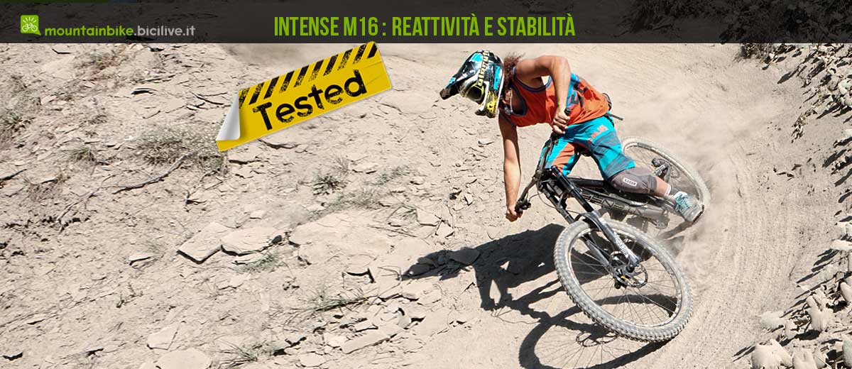 Vi avevamo già presentato la M16 in carbonio vista e toccata a Cosmobike, ora è il turno del telaio in alluminio che abbiamo finalmente potuto apprezzare sul campo. Il test si è svolto, durante il mese di luglio, nel bike park di Les Deux Alpes (Francia), teatro di una delle tre tappe del Crankworx: uno scenario perfetto per mettere sotto stress la Intense M16 “alu”. Analisi statica della Intense M16 intensecyles.com Il telaio è in alluminio idroformato, saldato a mano dalle sapienti mani dei tecnici californiani di Intense. Tutto nuovo rispetto al progetto M9, sia per geometrie sia per formato ruote. La bici si presenta con l’altezza del movimento centrale di 365 mm (H), l’angolo sterzo di 63.5° (E), l’angolo piantone di 73.3° (I) e un interasse da 1219 mm in taglia M (A). La lunghezza del carro è di 445 mm (C). Il passaggio dei cavi esterno sacrifica un po’ l’estetica, ma facilita gli interventi su di essi. L’escursione al posteriore può essere variata intervenendo con una brugola sul forcellino alla base dell’ammortizzatore ed è da 215 o 240 mm. I perni del link inferiore possono venire ingrassati velocemente attraverso due piccole porte, aumentando la scorrevolezza dei cuscinetti ed evitando di smontare così ogni volta il pezzo. Il carro è dotato del sistema VPP, lo stesso delle altre Intense testate come la Tracer 275C, un sistema in grado di assorbire urti durante la pedalata a differenza di altri disegni che invece bloccano la sospensione applicando troppa forza di spinta alla catena. Il risultato è un comfort mai provato nell’affrontare buche e ostacoli anche durante la fase di spinta massima sui pedali. Ben fatte le saldature a vista e numerosi i fazzoletti di alluminio collocati nei punti critici che vanno ad aumentare la rigidità di questa dh racer. La parte bassa del downtube è protetta da un inserto in gomma. Inoltre sono molto utili i due fork bumper installati nel telaio che evitano il contatto con la forcella e con il parafango in plastica situato tra il carro e l’ammortizzatore, quest’ultimo atto a proteggere il sistema da fango e detriti. Il telaio è garantito dalla casa madre per 2 anni. Montaggio Il reparto sospensioni all’anteriore è affidato alla Rockshox Boxxer World Cup da 200 mm, mentre nel posteriore è collocato il Cane Creek Double Barrel Coil con la sua infinità di regolazioni. I freni sono Shimano Saint con dischi da 200 mm sia all’anteriore sia al posteriore, in grado di offrire ottime prestazioni e affidabilità senza rivali e il manubrio è il Renthal Fatbar Lite DH 20 da 780 mm e lo stem della stessa marca INTEGRA II Direct Mount 45 mm. Il gruppo trasmissione è tutto di casa Sram con il suo X01 DH da 7 velocità con corona da 36T e pacco pignoni 10-24T, mentre il guidacatena è l’E13 LG1. Sella WTB Volt Race, reggisella Thomson Elite e cerchi No Tubes Rapid 30 Team da 27,5″. Le coperture sono Maxxis Minion 27.5×2.5. Il test della Intense M16 Come nel test della Intense 951 Evo, la M16 ispira confidenza fin dal primo metro e la voglia di mollare i freni per valutare quanto la bici possa regalare è alta. La posizione in sella fa subito capire l’animo “race” di questa bike. Infatti l’interasse leggermente allungato e l’angolo di sterzo più aperto (per esempio rispetto alla vecchia M9) rendono questa mtb molto più stabile senza farle perdere quella reattività che ti consente di cambiare traiettoria in qualsiasi momento. L’ottima geometria la rende facile e intuitiva nell’inserimento in curva e assumendo la giusta posizione in spinta sui pedali, in uscita si “schizza” fuori a velocità sostenuta. Nei tratti veloci e accidentati è una vera e propria macchina da guerra. Il nuovo formato delle ruote da 27,5″ agevola i rider sulle piste sconnesse e la bici raggiunge velocità sostenute in minor tempo grazie alla maggior capacità di “galleggiare” tra gli ostacoli. Eccellente il lavoro svolto dal reparto sospensioni. La Boxxer World Cup con la nuova cartuccia Charger, migliorata notevolmente rispetto alla vecchia, è molto più scorrevole e sensibile. Grazie agli spessori (i famosi Token) montati all’interno dello stelo sinistro dove è presente la cartuccia dell’aria, è possibile cambiare anche la curva di affondamento in modo da poter regolare la forcella in base alla guida del rider, rendendola quindi più lineare o progressiva, proprio come sulla Pike o sulle altre forcelle di casa RockShox. Ormai conosciutissimo il Cane Creek che, con la sua ampia gamma di regolazioni, rimane un ammortizzatore valido ma difficile da settare per i rider neofiti. Efficace nei rilanci, forzando la pedalata la M16 prende subito velocità senza avvertire il classico fenomeno del “bobbing” (ondeggiamento eccessivo del carro in pedalata) grazie al collaudato sistema VPP. Il test è stato effettuato con l’escursione al posteriore di 215 mm, consigliato per chi prediliga una bici più reattiva e dall’animo corsaiolo. In tutte le discese non sono mai arrivato arrivato “a pacco”, cioè a fine corsa, e il questo setting al posteriore sembra essere il giusto compromesso per andare forte in ogni condizione. Personalmente valuto l’altra opzione (240 mm) un po’ eccessiva, comunque ottima per chi voglia scendere ovunque senza “sbattersi” e dover scegliere la traiettoria meno bucata o dissestata. Il mezzo, pur perdendo un po’ di grinta nei cambi di direzione e nelle uscite di curva, ti fa sentire come a cavallo di un “materasso”. L’Intense M16 è ben bilanciata, stabile nell’affrontare i salti e maneggevole in aria. La scorrevolezza dei mozzi 32 Hole No Tubes 3.30 e la rigidità strutturale dei cerchi No Tubes Rapid 30 Team da 27,5″ donano a questa bike un’uscita di curva fulminea, dando l’impressione che il manubrio scappi dalle mani. I freni Shimano Saint hanno un gran potenziale, le leve un’ottimo feeling sotto al dito indice e i dischi ICE-technology, combinati con le 