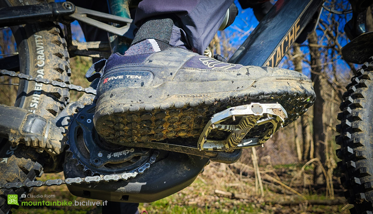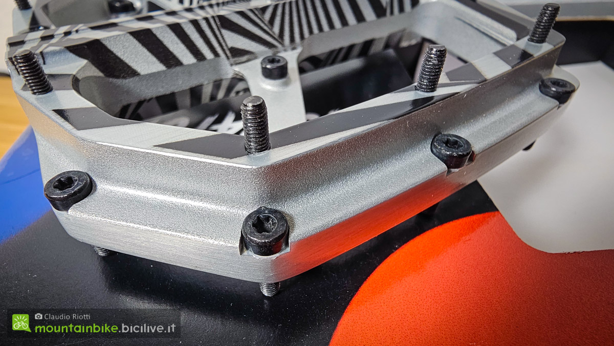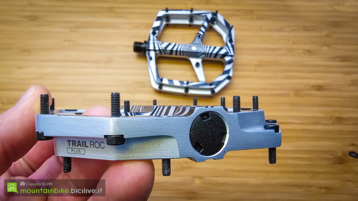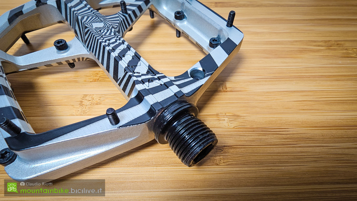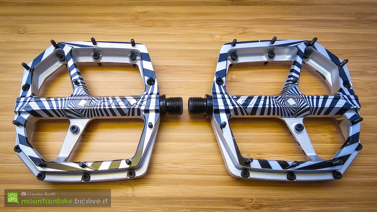 Test pedali LOOK Trail Roc+ Signature Series Thomas Genon Claudio Riotti 17 Febbraio 2025 Test Abbiamo messo alla prova il pedale Trail Roc + di LOOK Cycle (www.lookcycle.com) nella versione “Thomas Genon Signature”, disponibile sul sito ufficiale al prezzo di 179,90 euro. Questo pedale sviluppato in collaborazione con il rider Thomas Genon si presenta come una soluzione flat con 10 pin studiata appositamente per le discipline DH, dirt e trail. Se cerchi un pedale con il super grip, leggi il “test dei pedali MTB flat Base Pedals di e*thirteen: grip altissimo, prezzo basso“. Il prodotto nasce dalla volontà di offrire ai rider una piattaforma ampia e durevole, capace di garantire il massimo controllo e stabilità anche in condizioni estreme. Thomas, conosciuto anche come “Tommy G”, è un rider belga famoso per il suo talento eccezionale nel freeride e nello slopestyle MTB che vanta, tra le altre cose, ben 10 partecipazioni alla Red Bull Rampage. Il design del pedale è ispirato ad alcuni dei suoi film preferiti di Hitchcock e Kubrick, con una grafica psichedelica che come dice lui stesso “riflette davvero la mia personalità”. LOOK, con la sua serie Signature, ha già reso omaggio a icone come Peter Sagan, Alberto Contador e Christoph Sauser, impronte indelebili nella storia del ciclismo. La nuova edizione si dedica invece a due rider d’eccellenza, Kriss Kyle e Thomas Genon, protagonisti nelle rispettive discipline. Abbiamo già parlato dei Trail Roc+ nella nostra Guida alla scelta pedali MTB a sgancio e flat LOOK. La versione normale è disponibile in tre colori Orange, Black e Silver al prezzo di 159,90 euro. Trail Roc+ Thomas Genon, caratteristiche tecniche Corpo: in alluminio forgiato Asse: in acciaio Chromoly+ Due cuscinetti a sfera 10 pin a vite regolabili e sostituibili Dimensioni: 104 mm x101 mm x 16 mm Q Factor: 56 mm Peso rilevato: 197 g l’uno, 395 g il paio Prezzo: 179,90 euro Nemmeno la peggiore giornata di pioggia ci ha fermato per questo test… Il nostro test Come scritto nella nostra guida per scegliere i pedali flat o a sgancio, reputo che sia sempre meglio usare entrambi così da non prendere nessun “vizio di forma” e trarre il meglio dalle due tipologie di guida. In inverno uso spesso i flat, sia in pumptrack che in enduro, proprio per “risvegliare le caviglie” e mantenere la giusta sensibilità sui piedi, cosa che con i pedali clipless (ovvero a sgancio) si tende a perdere. Ho quindi montato i Trail Roc + sia sulla mia e-MTB Moustache Trail 9 che sulla bici da dirt e li ho provati con diverse scarpe per valutarne il grip. L’esploso dei Trail Roc permette di vedere i due cuscinetti a sfera. Sono passato da delle FiveTen Freerider Pro a delle Leatt con suola Vibram XR Ride, delle vecchie FiveTen Impact con suola un po’ consumata, delle Shimano GR7 e infine le nuove scarpe di Dainese HG ACTO PRO sempre con suola Vibram, così da avere più feedback possibili. Le uscite sono state sia in condizioni di pioggia e fango estremo sia di bel tempo, su svariate tipologie di terreni e di trail. I pin molto lunghi aiutano anche in caso di fango compatto che si accumula sul pedale: il grip resta buono. Sul campo Si tratta di un pedale con piattaforma di dimensioni ottimali per la maggioranza dei rider maschi. Porto un 43,5 e ogni scarpa che ho usato ha trovato spazio su tutti e 10 i pin disponibili. La prima sensazione quando si posiziona il piede è la minima distanza del pedale dalla pedivella. Se da un lato questo potrebbe migliorare la pedalata grazie a un fattore Q ridotto, può anche risultare scomodo: se si appoggia il piede in fretta, alla prima pedalata si rischia di avvertire un’interferenza della scarpa con la pedivella. Per evitarlo, bisogna fare più attenzione nel posizionare i piedi. Abbastanza fastidiosa come cosa. La seconda caratteristica è il corpo del pedale, estremamente piatto ma con una leggera sporgenza centrale in corrispondenza dell’asse. Visto di profilo infatti rivela una superficie convessa anziché concava. I lunghi pin posizionati strategicamente compensano in parte questo strano design, garantendo un grip abbastanza soddisfacente in ogni situazione. I pin sono “estremi”, circa 5 mm, e sottili: anche se consumano prima le suole, generano un buona aderenza con praticamente tutti i disegni e tassellature in commercio. Attenzione agli stichi però! Tutti e dieci i pin su entrambe le facce del pedale sono costituiti da viti con testa “torx”: questo li rende facilmente sostituibili anche con viti normali a testa esagonale ed è un bene perché durante il test ne abbiamo piegati parecchi a causa di collisioni con rocce e radici sui trail. Si raddrizzano facilmente ma a lungo andare è facile che si spezzino. I pin lunghi si piegano facilmente, anche perché quando si pedala sono più vicini al terreno (nella faccia inferiore del pedale). Conclusioni I pedali LOOK Trail Roc + si sono rivelati un prodotto ben fatto e “stiloso” per chi cerchi una piattaforma ampia e piatta, che fornisce buone prestazioni in ambito dirt, pumptrack e salti ma non garantisce il top del grip data la forma convessa del pedale. Nell’utilizzo enduro infatti è importante abbinarli a una buona scarpa con suola molto morbida, e anche così comunque il grip non è da “primi della classe”. I pin molto lunghi sono un arma a doppio taglio (a tutti gli effetti): forniscono grip ma sono facilmente danneggiabili e le suole delle scarpe, a lungo andare, ne risentono. Inoltre si urta più facilmente il terreno con la faccia inferiore del pedale e spesso si piegano i pin proprio per questo. Il prezzo della versione “signature” è davvero molto alto, 179,90 euro, ma in gamma si trovano anche modelli più abbordabili. Per ulteriori informazioni sui pedali Trail Roc + e sugli altri prodotti targati LOOK vi invitiamo a consultare il sito web ufficiale del brand francese. Qui invece trovate altri articoli che parlano di LOOK: Guida alla scelta