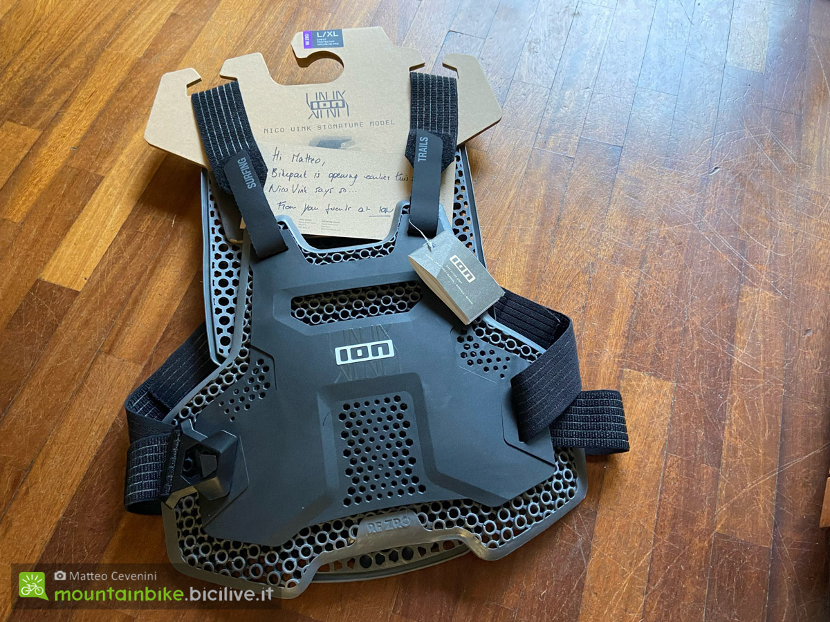 Pettorina MTB ION ARCON HD Pro: performance e sostenibilità per le giornate in bike park Matteo Cevenini 9 Maggio 2025 Test Oggi qui sulle pagine di Bicilive vogliamo parlarvi di un prodotto molto interessante proposto da ION: la pettorina ARCON HD Pro Chest Protector. Abbiamo avuto il piacere di poterla provare in anteprima per alcune uscite ma aspettiamo di testarla per bene durante la stagione di bike park alle porte per poi riportarvi le nostre impressioni sempre in questo articolo, che verrà quindi aggiornato. Seppur progettata proprio per questo utilizzo, la ARCON HD offre ottime performance anche in contesti enduro pedalati, adattandosi bene a uscite su sentieri tecnici sia in salita che in discesa specialmente se in sella a una eMTB. Sviluppata in collaborazione con il rider belga Nico Vink, la ARCON HD Pro Chest Protector è il risultato di oltre due anni di ricerca e test sul campo. Il prezzo di listino è di 239,99 euro. Protezione al massimo livello e sostenibilità La ARCON HD Pro è certificata CE livello 2, il massimo standard di protezione disponibile, ed è realizzata con materiali specifici RE ZRO, una tecnologia innovativa creata per resistere agli impatti più violenti riducendo al contempo l’impatto ambientale. I componenti RE ZRO sono progettati per essere facilmente riciclabili e biodegradabili, un aspetto che risponde alle esigenze di sostenibilità nel settore del ciclismo. Questa protezione toracica è pensata per i rider che spingono al limite, dalle linee freeride più estreme alle flow trail nei bike park, garantendo al contempo comfort e performance. La parte anteriore e posteriore della pettorina sono preformate in 3D, adattandosi al corpo per una calzata personalizzata, che non solo migliora la protezione ma anche il comfort, sia indossato sopra che sotto una maglia. Innovazione nella protezione Una delle caratteristiche più distintive dell’ARCON HD Pro è la tecnologia 360° AC Cooling che offre un’efficace ventilazione grazie alla struttura aperta dei componenti RE ZRO e alle ampie aperture nelle Power Slide Caps sul fronte e sul retro. Questo sistema permette al protettore di rimanere leggero e traspirante, riducendo al minimo la sensazione di calore anche durante le discese più lunghe e intense o nelle pedalate verso la vetta. Le Power Slide Caps, sviluppate con il materiale RE ZRO, sono progettate per migliorare le proprietà di scivolamento e impatto, riducendo la possibilità di lesioni in caso di cadute mentre si mantiene la libertà di movimento, fondamentale per poter guidare senza costrizioni. Design e comodità L’ARCON HD Pro è equipaggiato con cinghie elastiche SyncBody che si adattano facilmente al corpo del rider, consentendo una regolazione sia in lunghezza che in posizione. Il sistema di chiusura a una fibbia permette di indossare e rimuovere rapidamente il protettore, anche durante le sessioni più intense, offrendo una sicurezza aggiuntiva grazie alla sua solidità e facilità d’uso. Il sistema di chiusura affidato alla “Cannon Buckle” risulta una caratteristica che si distingue per la sua funzionalità: emette un suono rassicurante quando si aggancia, un dettaglio che troviamo molto utile. Testata per la performance Il protettore è stato testato in condizioni estreme, partendo dalle colline di Royal Hills in Francia fino ad arrivare agli eventi più prestigiosi del panorama freeride come la Red Bull Rampage. Atleti ION e non, tra cui diversi professionisti di downhill ed enduro, hanno messo alla prova il ARCON HD Pro su ogni tipo di terreno, dai percorsi più impegnativi alle linee da freestyle ottenendo risultati eccellenti in termini di comfort e protezione. I materiali RE ZRO impiegati nella realizzazione di ARCON HD Pro sono stati testati indipendentemente per le loro caratteristiche di biodegradabilità in accordo con la normativa ASTMD5511-18 & ISO 15985: 2014 (www.re-zro.com/terms). Non è stato lasciato nulla al caso e fa piacere vedere come sia stata portata l’attenzione anche all’impatto di questo prodotto una volta non più in grado di essere utilizzato. Note: come segnalato dal produttore, questa pettorina è stata progettata per resistere a impatti di livello 2 secondo la normativa CE ed è stata testata in condizioni reali di utilizzo da rider professionisti e amatori. La visione di Nico Vink Il protettore ARCON HD Pro è il frutto di una stretta collaborazione tra Nico Vink, RE ZRO e il team di ricerca e sviluppo di ION. Vink, che vanta una lunga carriera nelle competizioni gravity, negli eventi e nel trail building, ha portato la sua esperienza diretta nella creazione di un prodotto che rispondesse alle esigenze dei rider più esigenti: “...abbiamo lavorato per creare una protezione che non solo ti protegga ma che ti permetta di esprimere al meglio il tuo stile di guida, sia in gara che durante le uscite in freeride“. Prime impressioni Al momento l’ho utilizzata solo un paio di volte ma sono rimasto davvero colpito da come si adatta al corpo e ai movimenti del rider, sembra di avere una seconda pelle. A differenza del Fox RaceFrame che uso di solito e che mi ha protetto bene in una brutta caduta l’anno scorso, la ARCON HD Pro è molto più stabile e aderisce meglio. Inoltre, il sistema di cinghie elastiche permette una perfetta aderenza e non ostacola durante la respirazione. Conclusioni L’ARCON HD Pro rappresenta una delle soluzioni più avanzate sul mercato per i rider di downhill e enduro che cercano una protezione di livello superiore senza sacrificare comfort, mobilità e sostenibilità. Con un prezzo di 239,99 euro, questo protettore si inserisce nella fascia alta del mercato, ma offre prestazioni e materiali che giustificano ampiamente l’investimento. Vi suggeriamo di continuare a seguirci qui sulle pagine di Bicilive per le nostre impressioni dopo aver testato a fondo ARCON HD Pro e per gli altri prodotti offerti da ION di consultare il sito ufficiale. Leggete anche il test gin