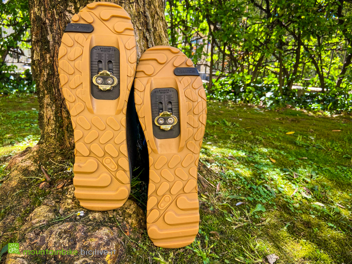 Sotto la scarpa troviamo una suola con mescola in gomma MC1, pensata per offrire un grip medio che agevola l’aggancio e lo sgancio dal pedale, mantenendo comunque una buona durabilità.