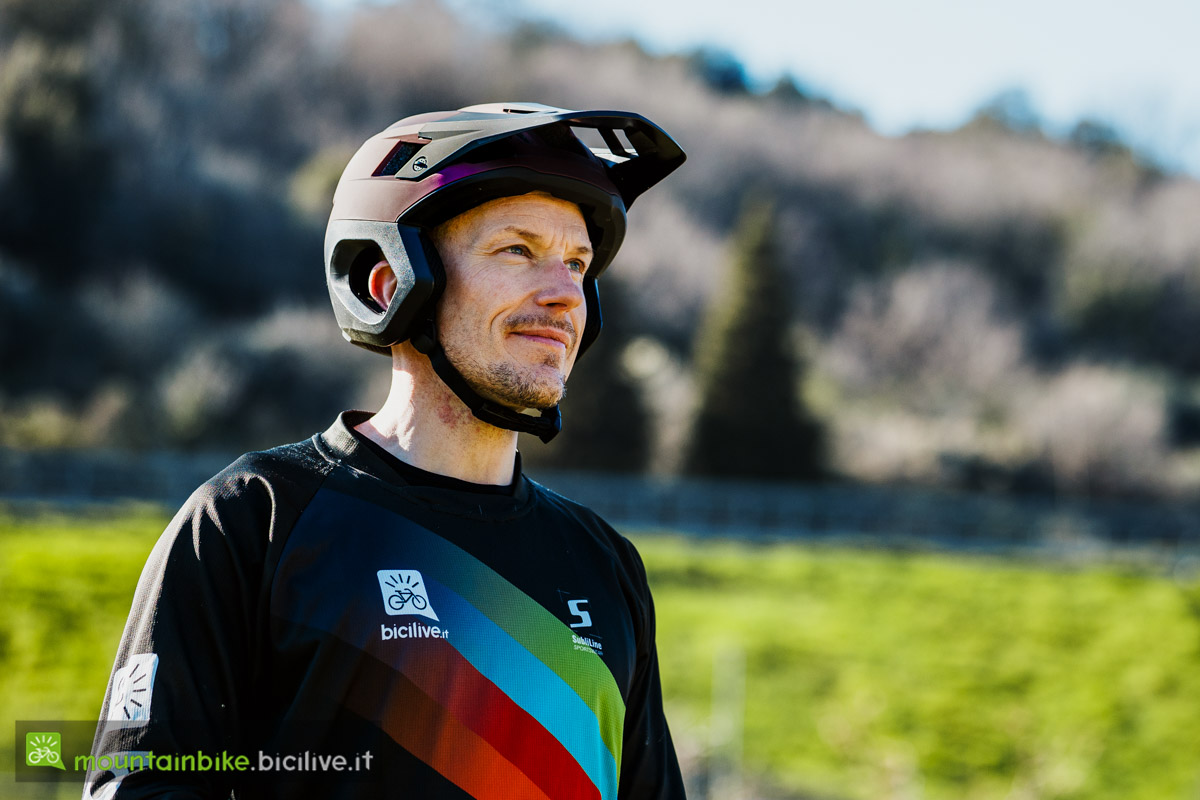 Foto di Claudio Riotti durante il test del casco MTB di Progrip Meteor a Finale Ligure.