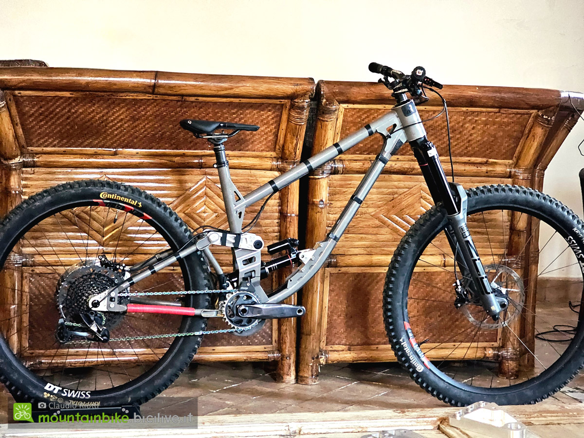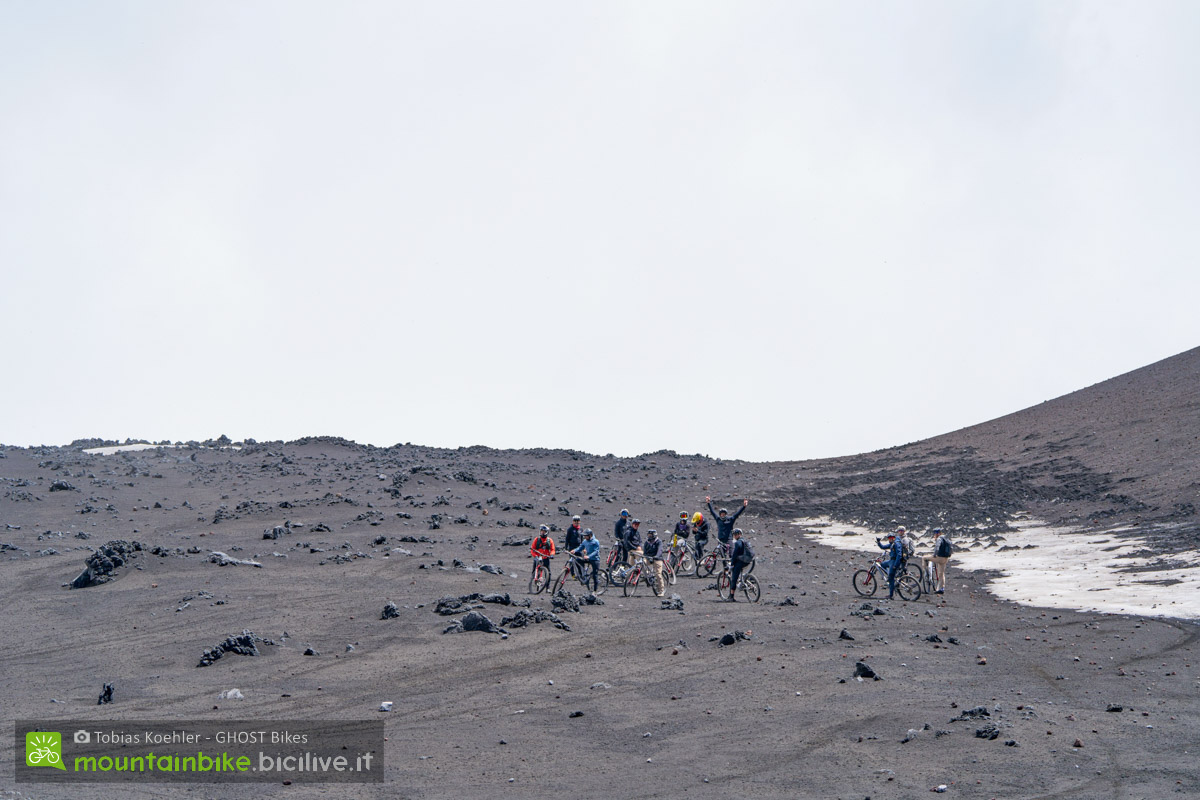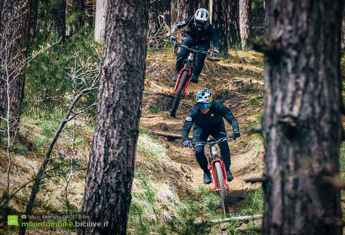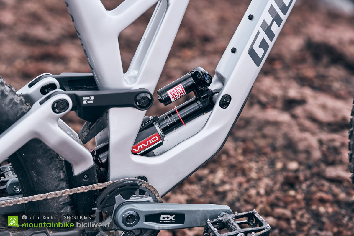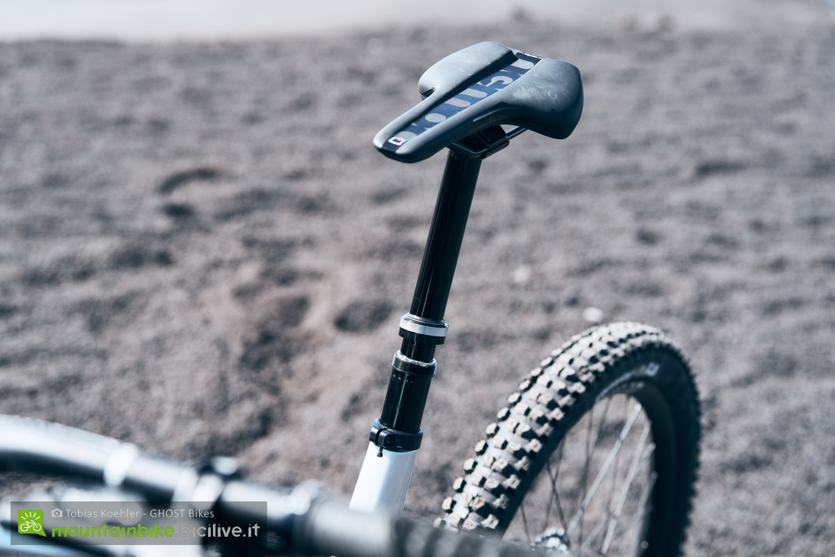 Test GHOST POACHA: una MTB da freeride provata sul vulcano Etna Claudio Riotti 7 Maggio 2025 Test Siamo stati invitati da GHOST Bikes come unico media italiano per trascorrere una due giorni indimenticabile sul vulcano Etna, in Sicilia, per la presentazione della nuova MTB da freeride POACHA. Questa mountainbike è frutto di due anni di sviluppo e presenta una geometria modificabile, 180 mm di escursione su ruote mullet 29/27.5, telaio in carbonio e carro VPP con tecnologia Traction Link 3.0. Tre modelli in gamma con prezz do 8.000 euro di per la POACHA FULL PARTY, 6.499 euro per la POACHA PRO e 4.999 euro per la POACHA modello base. Vediamo ora alcuni dettagli, le caratteristiche tecniche e il montaggio del modello provato. Alla fine dell’articolo trovate le nostre impressioni ma si tratta di un breve test di due giorni e non di una prova a lungo termine come facciamo di solito. GHOST POACHA, un nome da spiegare GHOST Bikes è famosa per i nomi particolari delle sue biciclette come LECTOR, NIRVANA, RIOT, PATH RIOT tutti concepiti per dare un’idea del carattere della bici. Il nome scelto per questa nuova mountain bike deriva da “poacher”, il cacciatore di frodo, ma è cambiato con la “a” finale per trasformarlo in un nome con un’accezione positiva. Per GHOST infatti, POACHA è il termine adatto per definire quei rider che non seguono la linea più facile per scendere ma ne creano una loro, nella vera filosofia del freeride, ed è proprio quello che abbiamo fatto sui pendii di sabbia vulcanica dell’Etna! Korbinian Engstler (casco giallo) e Tomáš Slavík (casco Redbull). Un progetto ampio per una MTB molto versatile La POACHA rappresenta una ventata di aria fresca per il brand tedesco. Difatti, per consolidare il nuovo posizionamento del marchio, GHOST supporta come sponsor The Nines, uno dei più importanti festival europei di Freeride e Slopestyle in mountain bike. Inoltre, per il lancio di questa nuova MTB c’è un grande progetto globale che ha previsto anche la realizzazione di un video, il POACHA’s journal, che è un cortometraggio girato con i pro rider GHOST che sono intervenuti nello sviluppo, Tomáš Slavík e Korbinian Engstler, più altri due nuovi rider fortissimi nei trick in stile slopestyle. Il video è stato realizzato in Europa e Canada ed è veramente molto bello, lo trovate a questo link. Slavík (ormai leggenda della MTB, tre volte campione del mondo 4X, atleta RedBull e vincitore di svariate Urban Downhill “Cerro Abajo”) ci ha svelato che userà la POACHA per le sue competizioni di downhill urbano con l’ammortizzatore bloccabile via wireless al manubrio per le sezioni pedalate e le forti compressioni dei salti a “hip”. La POACHA però è pensata anche per il downhill puro perché si può montare con una forcella doppiapiastra da 200 mm, aumentando l’escursione posteriore a 190 mm cambiando interasse dell’ammortizzatore (75 mm anziché 70 mm). Oppure è utilizzabile anche per l’enduro spinto, dato che si può pedalare in vetta abbastanza agilmente per essere una “biciona” con 180 mm di escursione, come abbiamo avuto modo di provare nei (seppur brevi) trasferimenti di questa due giorni grazie al setting “High” con cui GHOST ci ha fornito le bici, ne parliamo nel paragrafo seguente. Caratteristiche tecniche La POACHA è quindi una MTB davvero solida e creata per “lo scassato”, il claim che GHOST ha scelto, built for the rough, è decisamente azzeccato. Il telaio in carbonio pesa 3,8 kg in taglia L ed è testato per ottenere la classificazione di “categoria 5” (la classificazione ASTM, American Society for Testing and Materials, suddivide le MTB in diverse categorie in base al loro utilizzo e alle condizioni di carico che possono sopportare. La categoria 5 è la più resistente e si rivolge a biciclette destinate a percorsi estremamente impegnativi, come quelli downhill e freeride). La POACHA permette un peso di rider+bici di 120 kg. La sospensione a infulcro virtuale VPP denominata “Traction Link 3.0” garantisce grande trazione, riduce gli oscillamenti indesiderati del carro e assicura una buona performance in frenate e staccate estreme. Entrambi i link della sospensione ruotano nella stessa direzione, anziché in senso antiorario come nei sistemi VPP “tradizionali” di Santa Cruz o Intense. Se volete saperne di più su cosa sia un VPP leggete il nostro tutorial sulle sospensioni della MTB. GHOST ha scelto di non usare un carro con High Pivot, ultimamente molto di moda sulle MTB da enduro e DH, perché grazie al VPP che utilizzano sono riusciti ad avere la curva di progressione desiderata. Le geometrie sono modificabili tramite un flip chip sui foderi alti che permette di variare l’angolo di sterzo di 0.5°, l’angolo sella di 1° e l’altezza del movimento centrale di 7 mm. Si può modificare il reach e l’interasse in incrementi di 5 mm con la speciale serie sterzo di Acros, oltre che utilizzare un angle set in modo da variare solo l’angolo di sterzo. Il disegno del telaio ha preferito mantenere l’ammortizzatore basso in modo da avere un baricentro ribassato, stabilità e al contempo per aumentare l’agilità nei cambi di direzione. Il reggisella Tranz X è regolabile in altezza senza attrezzi: si svita la ghiera e si ruota uno spacer il plastica. Questo però è un compromesso dato che il tubo sella è interrotto e c’è uno spazio limitato per il reggisella telescopico. Tuttavia la taglia M prevede un 180 mm (abbassabile in incrementi di 5 mm senza attrezzi) che sono risultati sufficienti per poter godere appieno delle capacità della bici. Per la L e la XL è previsto un 210 mm. L’alloggiamento del multitool di XLC è stato progettato dai tecnici GHOST in modo da poter stringere la serie sterzo da sotto e non servono chiavi a brugola lunghe per effettuare questa operazione: geniale! Mi sono piaciute molto le soluzioni “smart” per trasportare tutto sulla bici come un punto di attacco sotto a